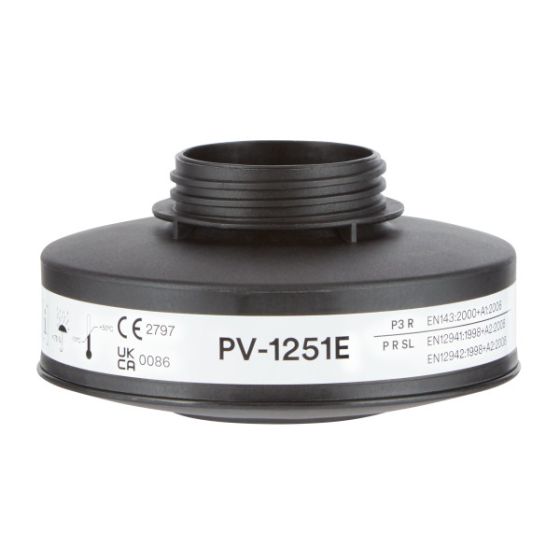PV-1251E deeltjesfilter bedoeld voor gebruik als onderdeel van 3M motoraangedreven ademhalingssystemen (zoals PV-300E) en nauwsluitende maskers; het uiteindelijke beschermingsniveau is afhankelijk van het gebruikte gelaatsstuk en systeemconfiguratie.