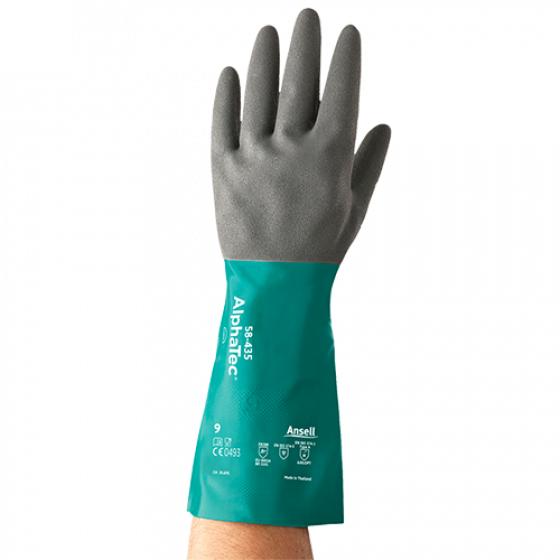 Deze Ansell AlphaTec 58-435 handschoen biedt de beweeglijkheid van een ongevoerde handschoen voor zware toepassingen maar biedt toch goed grip op natte en vettige voorwerpen dankzij de ANSELL GRIP™ Technology