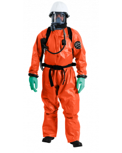 Daarnaast zijn de knieën en ellebogen verstevigd, wat de slijtvastheid verhoogt, terwijl de anatomisch gevormde gezichtsafdichting zorgt voor een goede aansluiting en comfort. Het bajonet handschoenringsysteem maakt snelle en veilige handschoenwissels mogelijk, zonder dat de drager wordt blootgesteld aan risico’s.