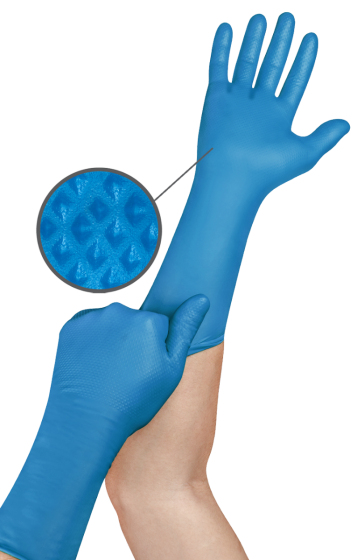 De dubbele chloorbehandeling aan de binnen- en buitenzijde zorgt voor een gladder oppervlak, waardoor de handschoenen gemakkelijk aan te trekken zijn, ook bij dubbelhandschoen-gebruik.