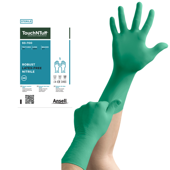 De TouchNTuff 93-700 is gammagesteriliseerd om een steriliteitsniveau (SAL) van 10⁻⁶ te garanderen, en is bovendien siliconenvrij, wat hem ideaal maakt voor gebruik in de farmaceutische, biowetenschappelijke en elektronische sector. De handschoenen zijn per paar steriel verpakt.